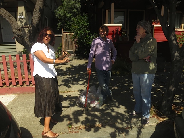Today we concentrated on the area around Oakland International High School. Since their joining the neighborhood in 2007 OIHS have been good neighbors. In 2013 the students partnered with neighbors to develop the Webster Street Garden Project which helped brighten and beautify the corner of 45th and Webster.